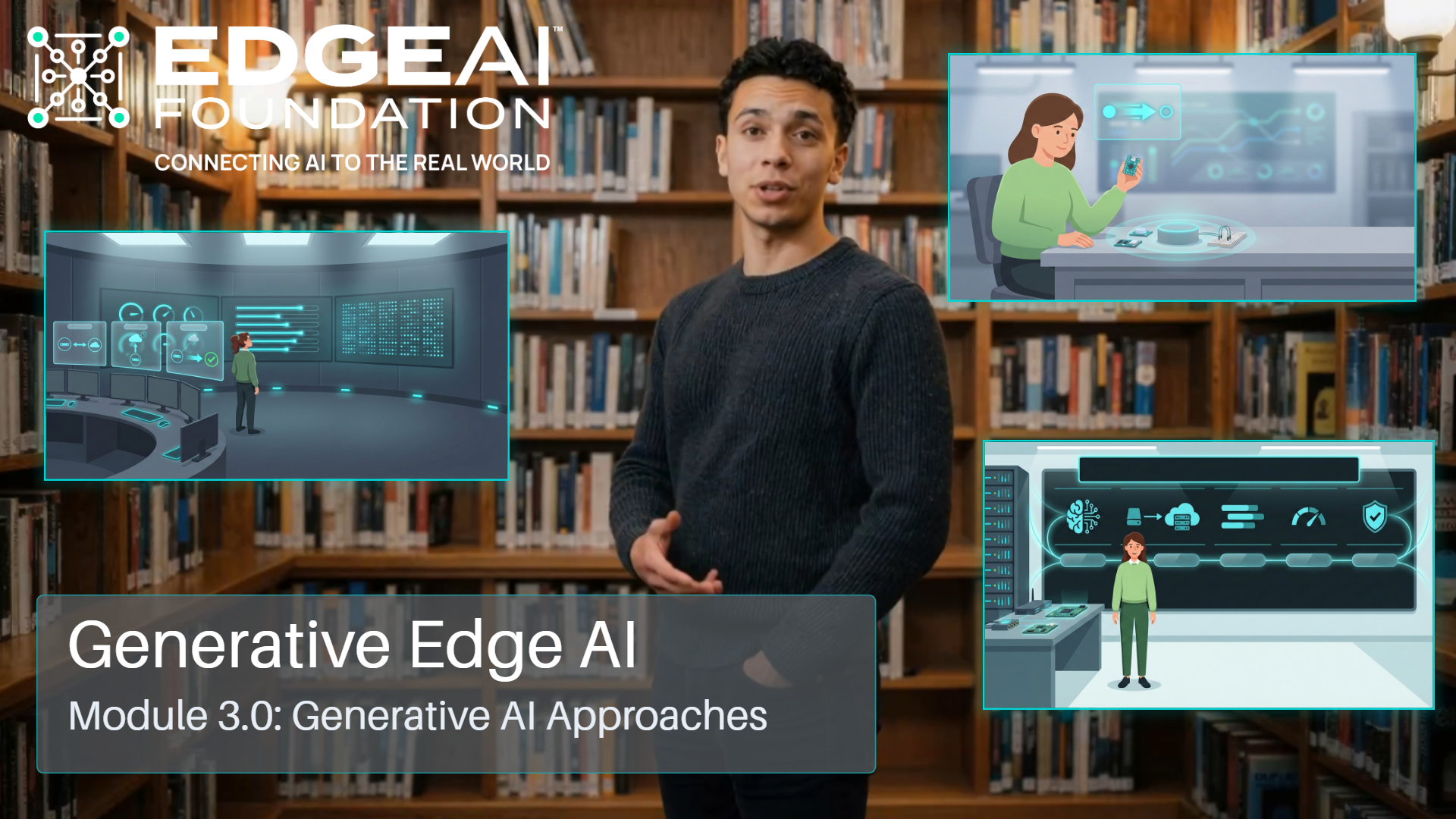 Recaps edge AI fundamentals and introduces the generative AI landscape, from tokens and model families to the economics driving inference to the edge.